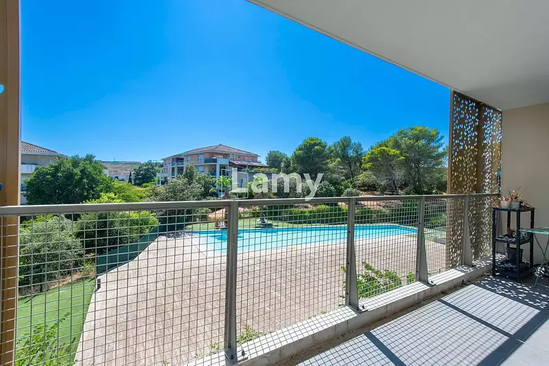 Cœur Duranne. Appartement de type 2 dans Résidence avec piscine et gardien. Appartement VENDU loué 739.12 € Charges comprises (fin de bail le 25/06/2027).Proches des commerces, des écoles et des axes routiers. Nombre de lots : 387Charges annuelles : 1440 €DPE :BPas de procédures en cours