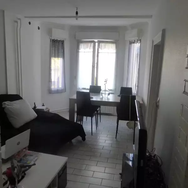 Proche gare, au calme dans petite copropriété avec espaces verts, appartement de type f2 (36 m² environ) l comprenant: Cuisine aménagée, séjour, dégagement, salle d'eau avec wc, une chambre. Terrasse.