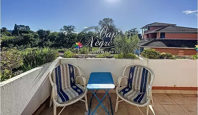 EXCLUSIVITÉ CAVALIÈRE 315 000 euros AVEC GARAGE Dans une résidence privée et au calme, à environ 800m de la sublime plage de Cavalière dite 'La Sportive', ce charmant appartement avec de beaux volumes bénéficie d'une terrasse bordée de jardinières d'env. 18m² doublement exposée au Sud et à l'Est, vue sur les collines environnantes. Il comprend: un spacieux séjour et cuisine entièrement équipée, les 2 menant à la terrasse, une chb avec rangements ouvrant également sur la terrasse, SDB, WC séparés. POSSIBILITÉ DE GARAGE EN SUS. Classe énergie D. CopropRiété de 85 lots principaux, charges annuelles moyennes env. 845 euros. 315 000E Copropriété de 151 lots - dont 85 lots habitation. (). Charges annuelles : 845 euros.