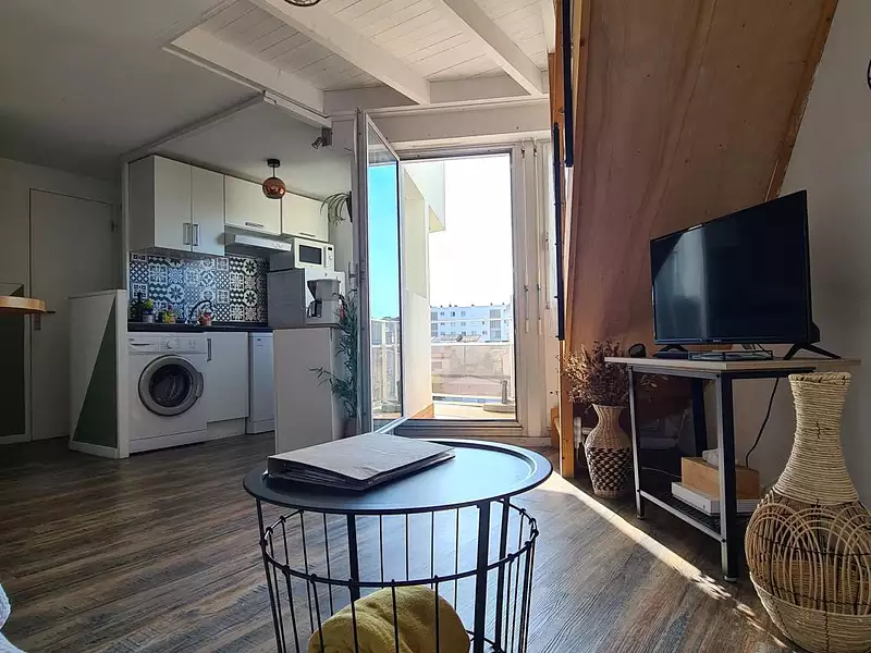 Dans Résidence sécurisée avec ascenseur, au dernier étage, appartement offrant séjour ouvrant sur balcon avec vue dégagée (Sud-Ouest), cuisine ouverte. salle d'eau et wc.