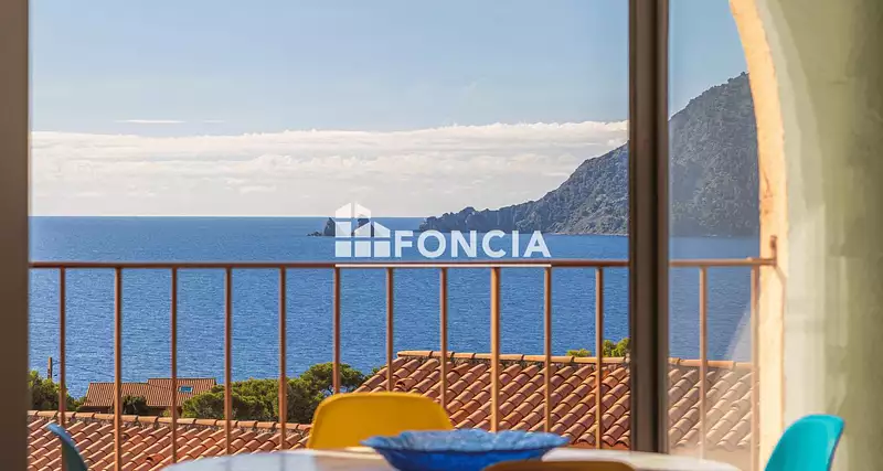 d'un hall d'entrée, d'une chambre, d'une salle d'eau moderne avec emplacement pour machine à laver, de WC séparés avec ballon d'eau chaude économique, cuisine totalement équipée, d'un séjour lumineux donnant sur une loggia avec une vue imprenable sur la Méditerranée et les Deux Frères.
