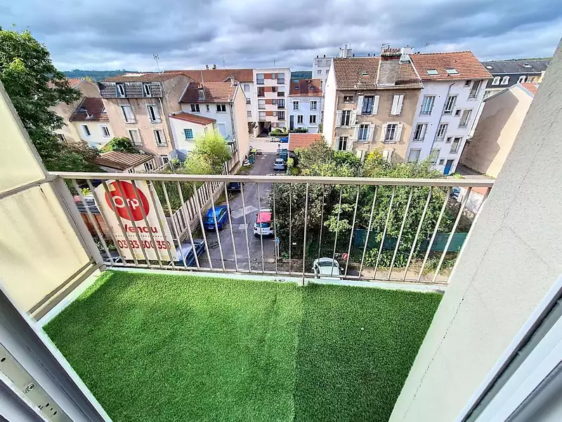 Laxou au 3ème et dernier étage d'une résidence, appartement en très bon état de type F2 comprenant : une entrée, une cuisine équipée ouverte sur séjour accès balcon. Une chambre avec placard et une salle de bains avec wc.