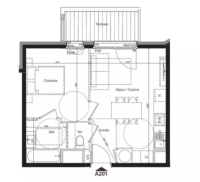 | 37,41 m² - 2 pièces - 1 chambre | Rez-de-chaussée |