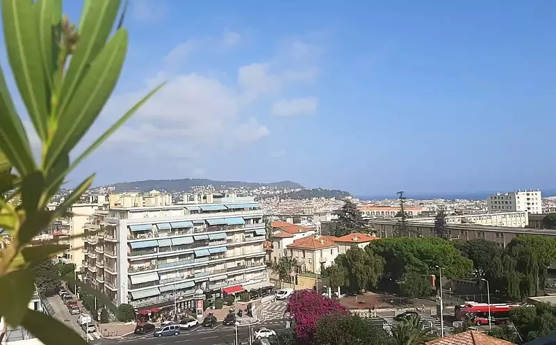 Ce Studio de 37m2 en dernier étage ascenseur et sa terrasse de 33m2 offre une très belle vue collines, ville et mer.