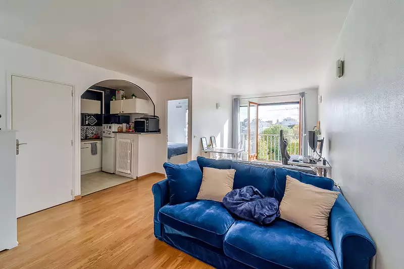 COLOMBES - Proche Centre - Au dernier étage d'une petite copropriété entretenue, Beau 2 pièces de 38m² en TB état et sans aucune perte de place; offrant : vaste pièce à vivre de 23m² exposée plein SUD (offrant une Vue dégagée); cuisine ouverte équipée, Chambre avec Lit et armoire, SdE + WC. Fenêtres PVC, Volets électriques. Cave et PARKING extérieur privatif. Appartement confortable, très au calme et Lumineux. Idéal pour un 1er achat. Copropriété de 55 lots - dont 18 lots habitation. (Pas de procédure en cours). Charges annuelles : 2640 euros.