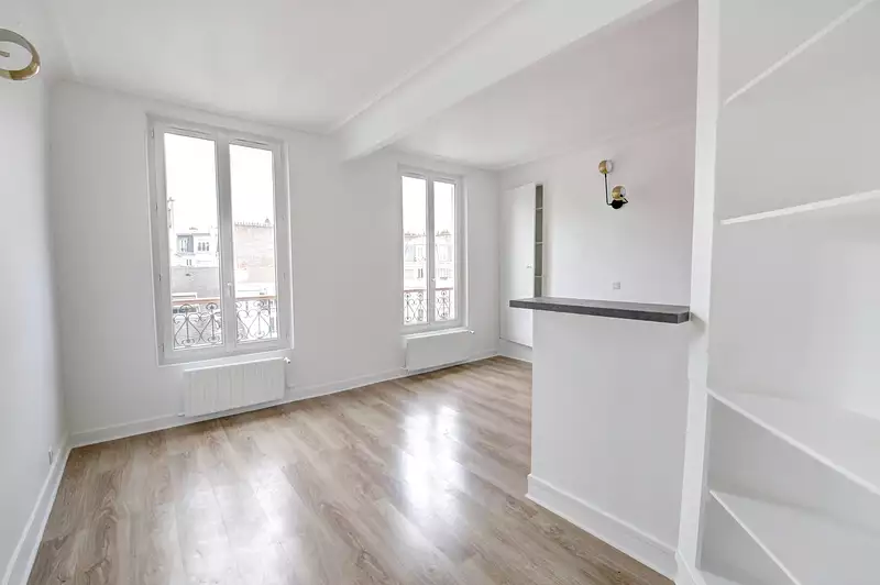 EXCLUSIVITE : RUE DU MONT CENIS- Au pied du métro Jules Joffrin et à deux pas de la Mairie du 18ème, dans un bel immeuble ancien TOUT JUSTE RAVALÉ, au 5ème et dernier étage, sans ascenseur, nous vous proposons ce bel appartement de 2 pièces principales, d'une surface Carrez de 38,85 m2. En excellent état (peintures neuves et isolation des murs par l'intérieur), il se compose d'une entrée, d'un séjour d'environ 20m2 TRES LUMINEUX avec VUE DEGAGEE et sans vis-à-vis, éclairé par deux grandes fenêtres, cuisine complètement aménagée équipée ouverte sur le séjour, une chambre, une salle d'eau avec douche et wc. Chauffage et eau chaude produits par une chaudière gaz individuelle.
