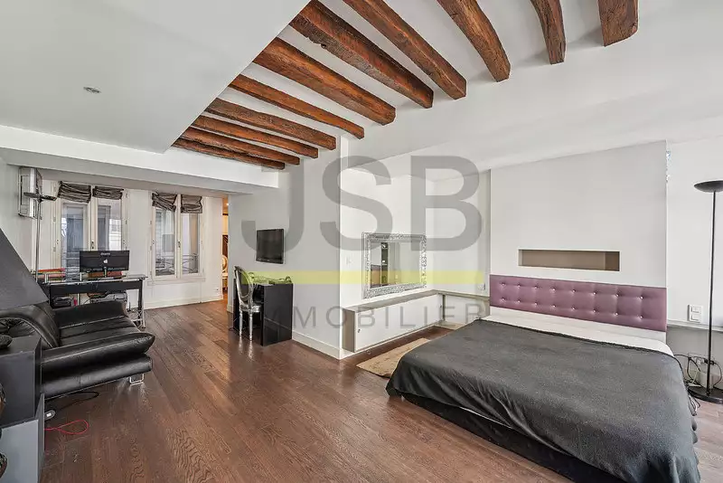 75002 - JSB vous propose rue de Clery, au 2ème étage d'une jolie copropriété entièrement rénovée (ravalement, cage d'escalier, toiture), un charmant appartement d'une superficie de 38 m2 (Carrez : 37,35 m2 / Au sol : 38,55 m2). Composé d'une entrée avec rangements, une grande salle d'eau avec wc, une pièce de vie traversante sur rue et sur cour, et un coin couchage. Parquet, poutres apparentes, calme, lumineux, charme de l'ancien et décoration contemporaine. Climatisation.