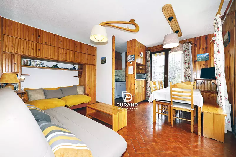Dans une petite copropriété calme à faibles charges, agréable T2 bis d'environ 38 m2. Il se compose d'une entrée, d'un coin montagne, d'une chambre, d'une vaste pièce de vie à double orientation donnant sur une grande terrasse exposée plein sud et offrant une superbe vue sur l'Eyssina.