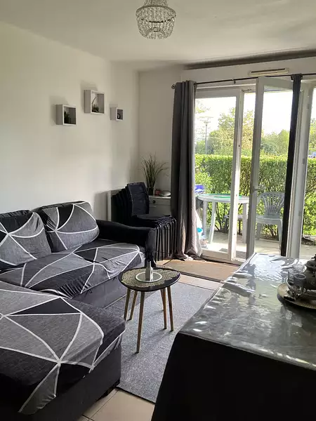 Situé au rez de chaussée, il est composé d'une entrée avec placard, d'un séjour avec une cuisine ouverte, d'une chambre avec placard, d'une salle de bains avec WC.