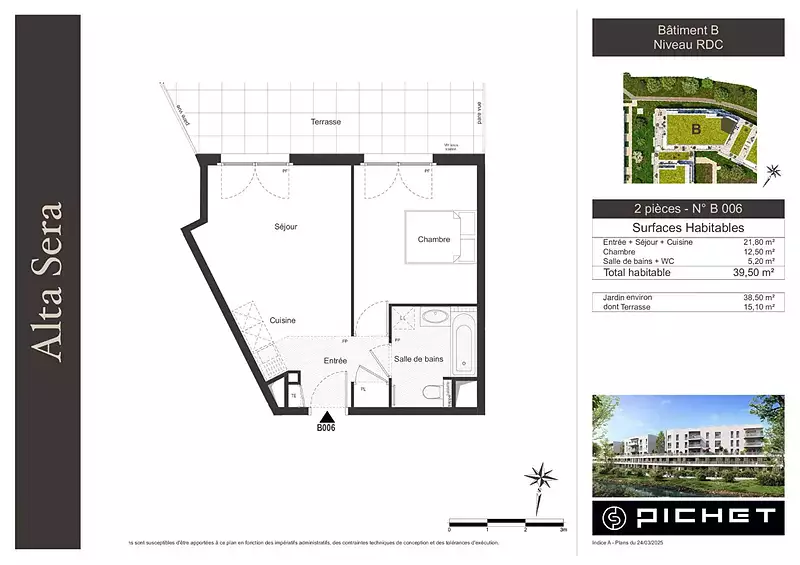 Découvrez cet appartement T2 neuf au rez-de-jardin 2 composé d'une entrée avec placard, d'un séjour/cuisine de 21.80 m² qui donne sur une terrasse de 15.10m² qui se prolonge sur un agréable jardin privatif de 38.50m², d'une chambre et d'une salle de bains avec wc.