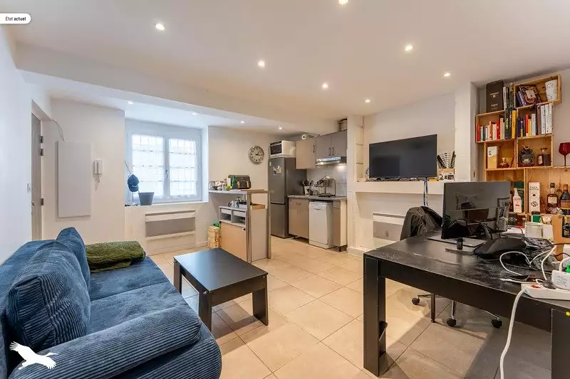 Bordeaux chartrons, rue St Joseph. Immeuble en pierre, T2 en rez de chaussée comprenant : Un séjour avec une cuisine ouverte, une chambre sur cour, une salle d'eau, un wc séparé. Les commerces et les transports sont à proximité. Proposition d'aménagement virtuel non contractuelle en dernière photo.