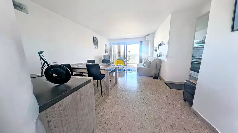 FREJUS PLAGE: Spacieux T1 entièrement rénové de 38m2 a 50M des plages, proche commerces, tout a pieds, résidence prisée en front de mer en étage élevé avec Asc, composé de : Hall avec placard, vaste séjour climatisé donnant sur une terrasse, cuisine équipée, salle d'eau avec douche a l'italienne, wc suspendu, rangements, un Garage de 18m2 et une Cave.