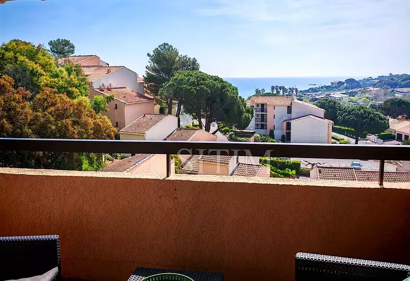 EXCLUSIVITE SITIM : SECTEUR LES ISSAMBRES , dans une résidence au bord de la mer avec piscine et tennis, appartement T3 de 42m² situé au deuxième étage, composé de : un séjour donnant sur une terrasse exposée sud, une cuisine aménagée et équipée ouverte sur le séjour, 2 chambres, une salle d'eau, un wc indépendant, une mezzanine . Une place de parking privative.