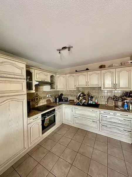 D’une cuisine moderne entièrement meublée et équipée, ouverte sur un séjour lumineux, climatisé grâce à une climatisation réversible,