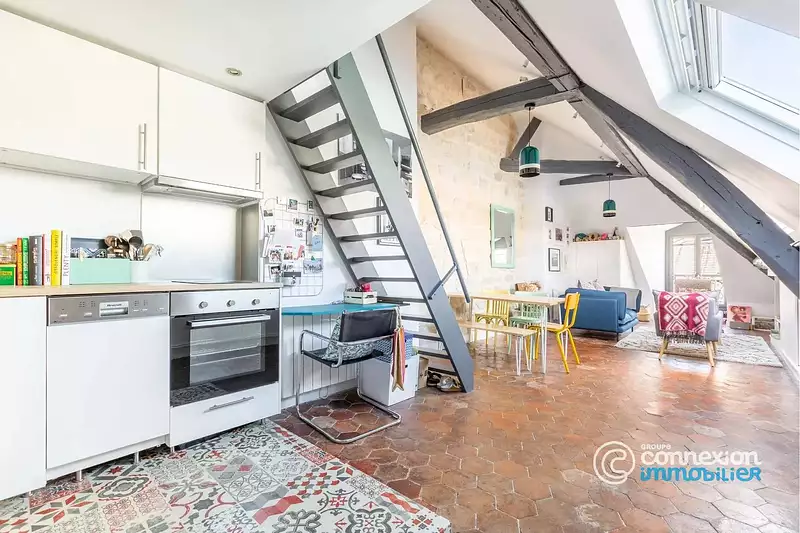 Véritable coup de cœur de 47m2 au sol ( 31m2 loi carrez), au 6ème et dernier étage sans ascenseur. Superbe volumes: 3,80m sous faîtage. Ensoleillé: appartement d'angle.