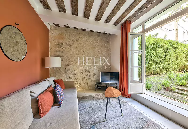 Centre ville, en face du parc du Château, magnifique 2 pièces entièrement dans petite immeuble rénové, comprenant: entrée, cuisine américaine équipée, salon, chambre, salle de douche, wc et jardin privatif sans vis à vis de 44 m². Lumineux et rue très calme RER en 2 minutes Copropriété de 6 lots (). Charges annuelles : 2400 euros.