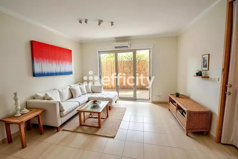 La pièce de vie conviviale de 21 m², lumineuse, intègre une cuisine équipée (plaque électrique, hotte et meubles) et s'ouvre sur une agréable terrasse privative de 6 m², parfaite pour profiter des beaux jours.