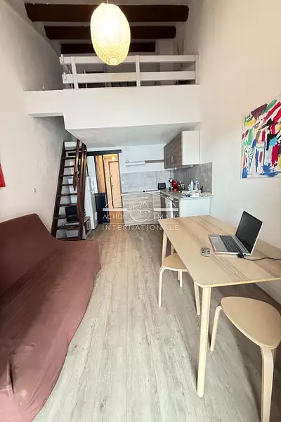 Ce bien de 39,55 m² se compose d'une entrée, séjour/cuisine, salle de bain avec WC, Chambre, mezzanine aménagée en chambre, placard et terrasse.