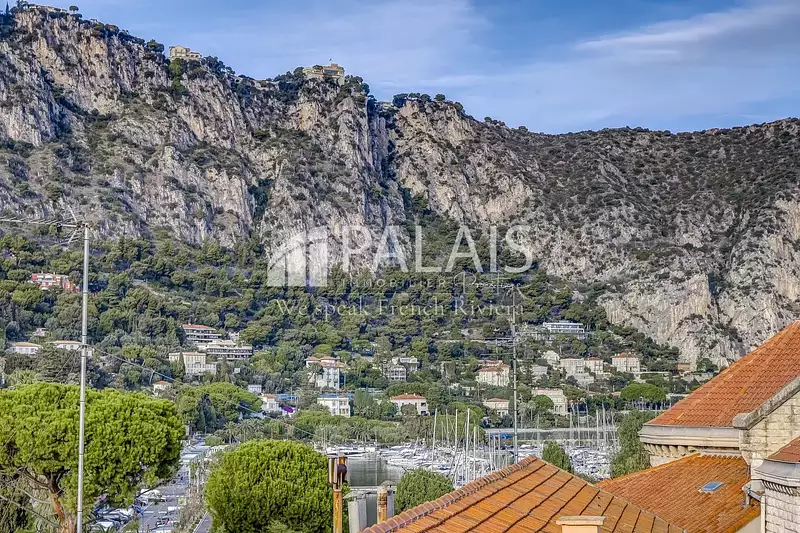 Il offre une pièce de vie agréable avec cuisine américaine ouverte, parfaitement agencée, donnant accès à un petit balcon où vous pourrez profiter d’une jolie vue sur les montagnes et d’un aperçu sur le port de Beaulieu-sur-Mer, avec ses bateaux.