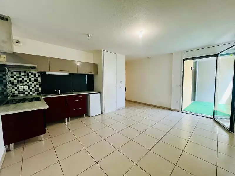 Dans une résidence récente appartement de type 2 au deuxième étage composé d'une entrée, une salle d'eau avec wc, une chambre et une pièce de vie avec cuisine ouverte.
