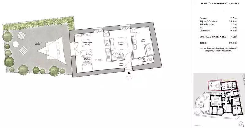 Surface : 40 m2 à aménager + 50 m2 de jardinType de bien : plateau brut dans bâtisse ancienne en réhabilitationExtérieur : jardin privatif
