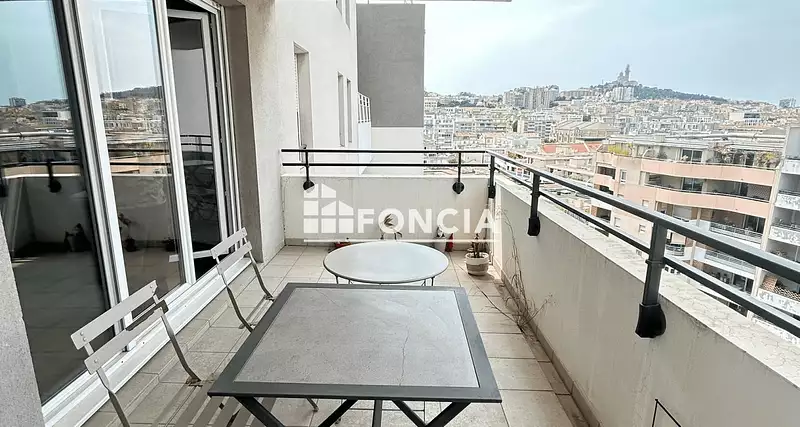Dans une résidence récente, Type 2 de 40m2 au 9eme étage avec ascenseur avec terrasse, séjour, cuisine ouverte, chambre, salle de bain, wc, box en sous sol