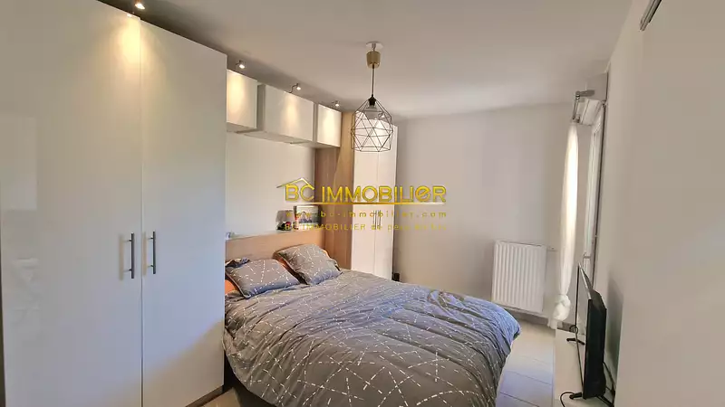 Côté nuit, vous trouverez une chambre confortable ainsi qu’une salle d’eau élégante et fonctionnelle.