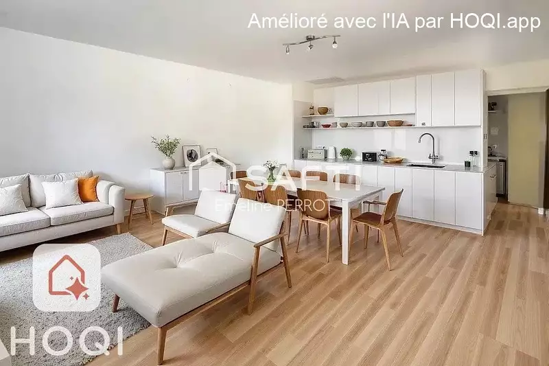 Il se compose d'un vaste séjour cuisine de 25m2, d'une chambre de 13m2 et d'une salle de douche avec wc.
