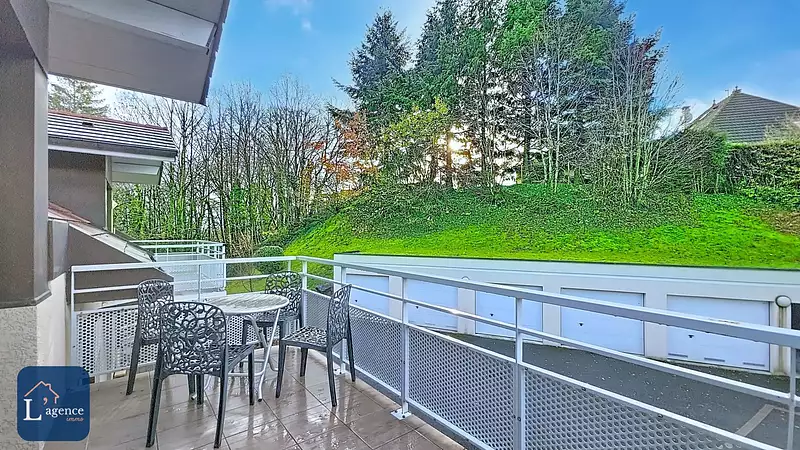 Le balcon de 8 m², accessible directement depuis la pièce de vie, vous permettra de profiter d'un environnement verdoyant, exposé Sud-Ouest. Ce bien dispose également d'un garage fermé de 14,49 m² et d'une place de parking extérieure privative, un confort rare en plein centre de Thoiry.