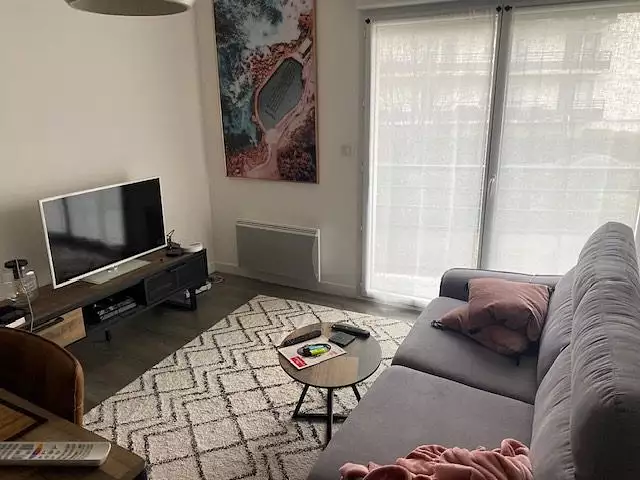Appartement de type 2, au 1 er étage d'une petite copropriété calme, de 2010, actuellement loué et comprenant une pièce de vie avec cuisine, accès balcon ouest, chambre et salle d'eau avec wc. Parking souterrain. Tramway et commerces à proximité immédiate.