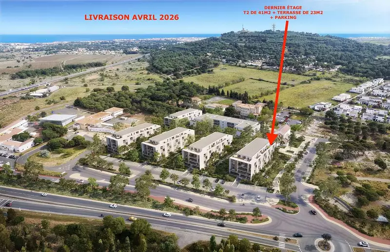Au cœur d'une résidence neuve à l'entrée d'Agde sur la route de Sète, découvrez ce charmant T2 de 41,5 m², idéal pour un premier achat ou un investissement . Situé au dernier étage, il bénéficie d'une belle exposition ouest et d'une terrasse généreuse de 23 m², parfaite pour profiter des couchers de soleil . L'appartement, livré en avril 2026, est en parfait état neuf, climatisé et lumineux. Il comprend une chambre, un séjour convivial, une place de parking en sous sol et l'ascenseur facilite l'accès à l'étage.