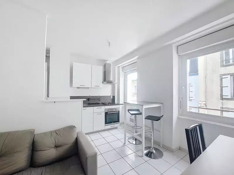 Situé dans un quartier très recherché de Brest, à St Martin, dans un immeuble en dalle béton, au 1er étage, cet appartement en très bon état se compose de 2 chambres, une pièce de vie avec cuisine aménagée/équipée ouverte et une salle d'eau.