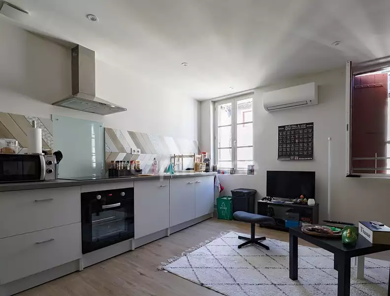 Ce bien, entièrement rénové en 2020, se compose d'un séjour lumineux avec cuisine ouverte, d'une chambre indépendante et d'une salle d'eau contemporaine avec douche à l'italienne. L'ensemble est équipé de menuiseries double vitrage et de la climatisation pour un confort optimal. La hauteur sous plafond apporte une belle sensation d'espace.