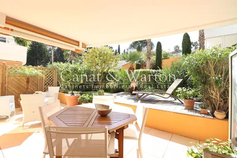 CANAT & WARTON Golfe de Saint Tropez, présente ce T 2 en rez de jardin à Cavalaire dans une résidence sécurisée de renom avec une belle piscine. Idéalement situé proche du centre ville et mer, ce T 2 est de 40,45 m2 loi Carrez avec une terrasse d'environ 30m2 exposée Sud. Composé par un hall d'entrée, séjour, cuisine ouverte toute équipée donnant sur une terrasse avec vue jardin tout arboré, chambre avec placard avec accès terrasse, une salle de douche et wc séparé. Possibilité d'acquérir un parking en sous-sol en supplément. Copropriété loi No65-557 du 10 juillet 1965 : 121 lots - Quote-part/an : 1 550 € - Aucune procédure en cours. Les informations sur les risques auxquels ce bien est exposé sont disponibles sur le site Géorisques www.georisques.gouv.fr. Flavien GRANDMAIRE, directeur de l'agence CANAT & WARTON Golfe de Saint Tropez est à votre disposition au 143 Rue du Port 83240 Cavalaire (+33)647524642 WE SPEAK ENGLISH-WIR SPRECHEN DEUTSCH. 2 AGENCES IMMOBILIÈRES DANS LE GOLFE DE SAINT TROPEZ: CAVALAIRE ET LA CROIX VALMER