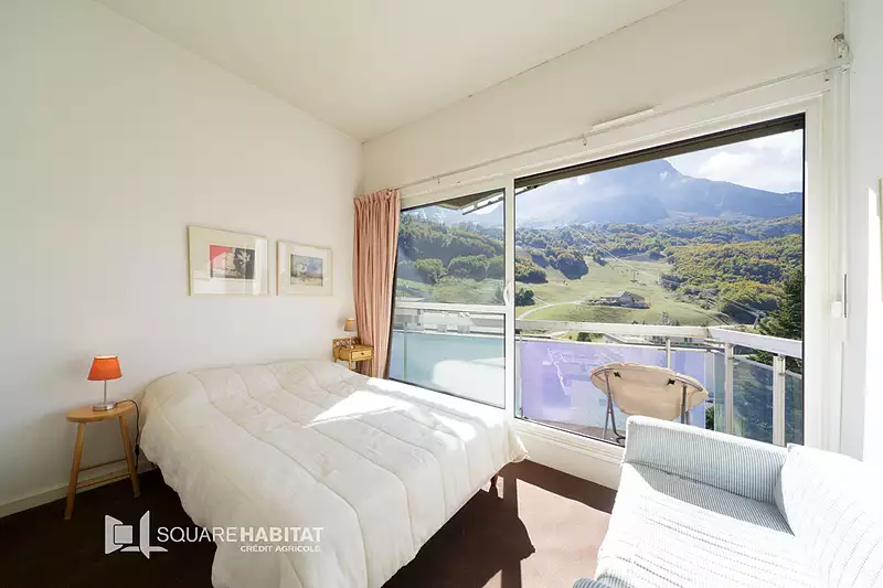 Station de ski GOURETTE. Station familiale de sports d'hiver des Pyrénées Atlantiques. Résidence EURONEIGE, proche des pistes de ski avec concierge et ascenseurs. Appartement T2 avec une entrée et son placard de rangements, une grande pièce de séjour avec coin cuisine et balcon exposé sud est. Un dégagement avec coin nuit (2 lits superposés) desservant WC indépendant, salle de bains et une chambre avec placard et une grande baie vitrée offrant une belle luminosité et vue dégagée sur le domaine skiable de la station. Egalement un balcon exposé sud ouest. Lot annexe: cave à skis. Visite virtuelle disponible.