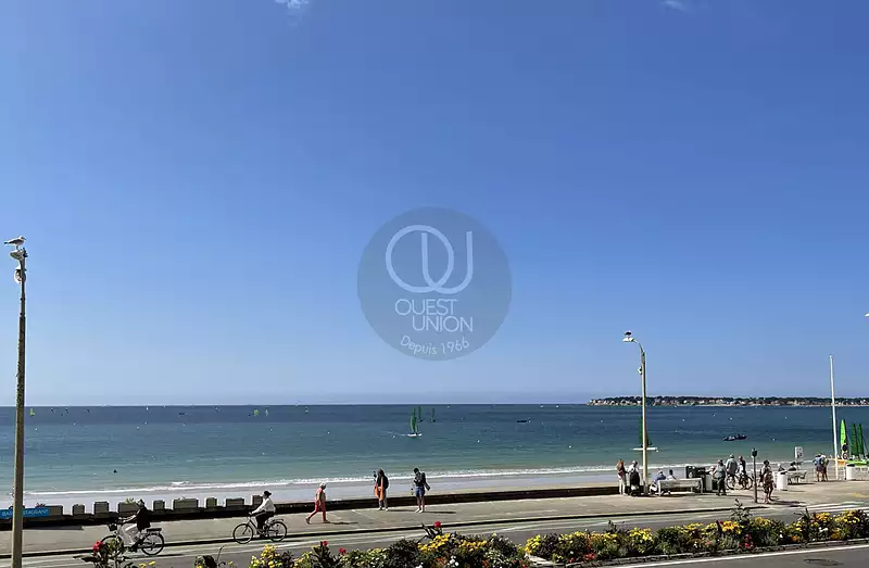 Dans une résidence de standing proche de l'avenue de Gaulle, beau T2 avec double baies face mer comprenant entrée avec placard, salle d'eau avec wc, chambre avec dressing, salon-séjour double avec cuisine ouverte aménagée et équipée sur terrasse de 11.5m² avec vue sur la baie. Garage en sous-sol. Prix: 525.000 euros (5.00 % honoraires TTC à la charge de l'acquéreur.) Copropriété de 144 lots - dont 65 lots habitation. Charges annuelles : 720 euros.