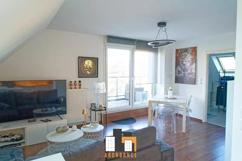 La Wantzenau village, Appartement F2 vendu loué 620€/mois hors charges (bail en vigueur jusqu'à octobre 2027) de 41,40m2 habitable et 48.9m2 sol + terrasse de 10.40m2 dans un immeuble de 2009 bien entretenu.