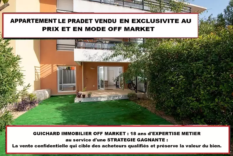 Ce bien proposé par guichard immobilier en exclusivité et en mode OFF MARKET a trouvé preneur au prix et dans un délai très court. Pourquoi ? - D'une part en raison des 18 ans d'expertise métier de l'agence. - D'autre part, en raison des principaux atouts du Off Market qui sont : 1. **Discrétion et gain de temps ** : Le bien est présenté uniquement à un cercle restreint d'acheteurs potentiels déjà qualifiés et en attente. 2. **Préservation de la valeur** : Une publicité trop longue ou trop visible fait baisser la valeur perçue d'un bien. Vous voulez mettre en vente votre bien ou sortir d'une situation de non vente qui s'éternise ? Contactez nous. AGENCE GUICHARD IMMOBILIER ON / OFF MARKET . VENTE - LOCATION - GESTION LOCATIVE . 119 avenue de la première DFL 83220 LE PRADET . Tél : 04 94 00 31 00 . Mail : (6.03 % honoraires TTC à la charge de l'acquéreur.) Copropriété de 68 lots (Pas de procédure en cours). Charges annuelles : 1660 euros.