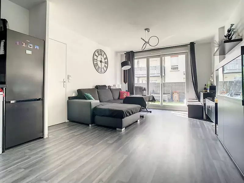 Ce bel appartement se compose d'un beau séjour avec cuisine ouverte aménagée et équipée donnant sur un grand balcon de 10m2, d'une chambre er d'une salle de bain avec WC.