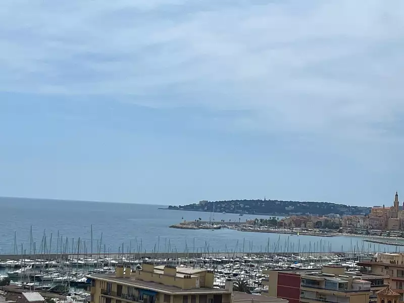 DANS UNE RÉSIDENCE SÉCURISÉE AVEC PISCINE, 2 PIÈCES AVEC TERRASSE 10 M2 VUE MER PANORAMIQUE, CAVE ET PARKING PRIVÉ . Dans un environnement sécurisé et calme, sous les hauteurs de Garavan à Menton, bel appartement 2 pièces en dernier étage avec climatisation composé comme suit : entrée sur la pièce principale, séjour avec cuisine américaine entièrement équipée avec accès à la terrasse d'environ 10 m2 exposée plein sud et avec vue mer panoramique, une chambre parentale avec douche à l'italienne et un WC invité séparé. Ce bien comprend également une cave et une place de parking privée au sous-sol de la résidence en complement de 25.000€. Des espaces verts de détente et une belle piscine sans vis-a-vis et au calme sont le plus de cette résidence d'exception.
