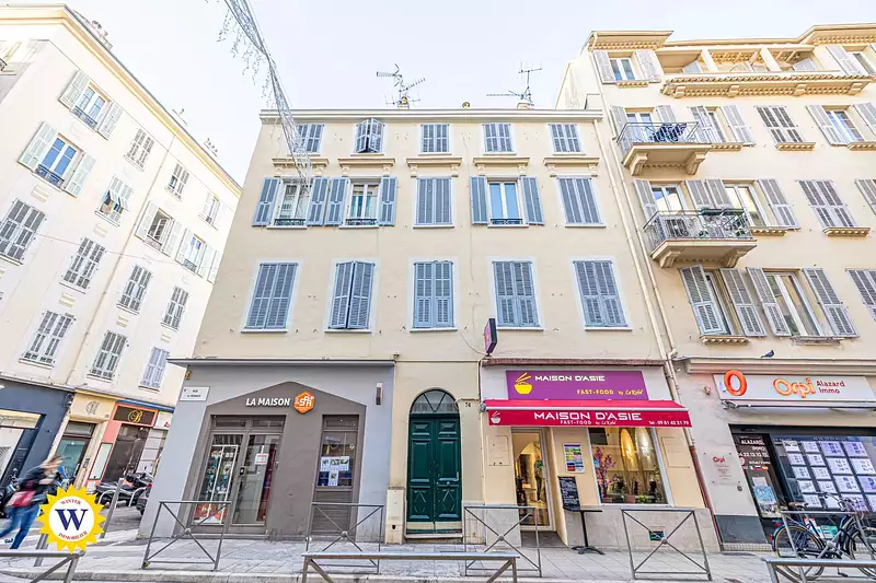 Situé au deuxième étage d’un immeuble niçois bien entretenu, sans ascenseur et sans ravalement à prévoir, l’appartement bénéficie d’une exposition plein sud.