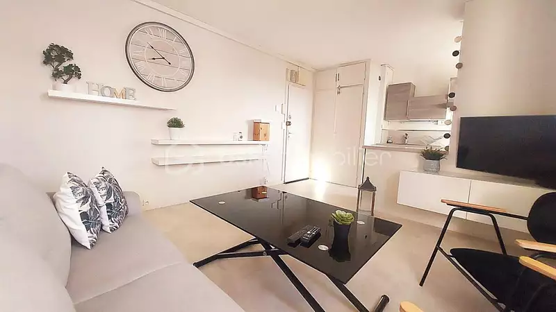 Vous disposez d'une pièce de vie avec cuisine ouverte entièrement équipée et aménagée. Puis d'une jolie chambre lumineuse et d'une salle d'eau avec wc et placard.