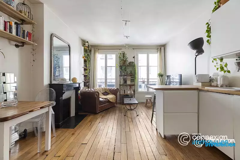 Lumineux et calme, traversant sur deux cours. Optimisé, sans perte de place. Parquet et cheminée d'origine.