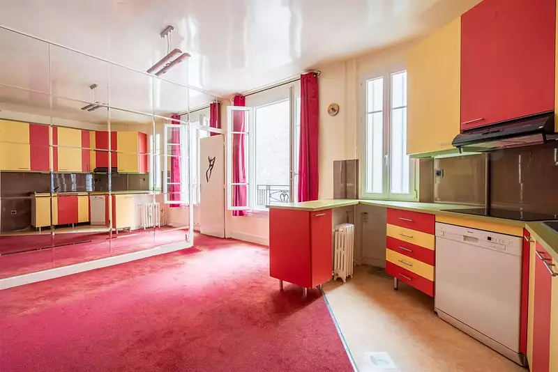 DAMREMONT/POTEAU - Dans un immeuble datant de 1932 au 1er étage avec ascenseur, charmant deux pièces de 41 m² au sein d'une copropriété calme et sécurisée. L'appartement se compose d'une belle pièce de vie avec cuisine ouverte, d'une chambre et d'une salle d'eau avec wc. Ses nombreux atouts sont : ses larges fenêtres (double vitrage), son plan compact et son calme. Appartement sain, copropriété sans travaux a prévoir. Local vélo couvert et sécurisé.