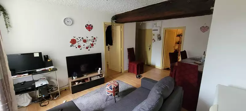 un espace cuisine, un espace salon séjour, une chambre ( possibilité 2 ) , une salle de bains, des sanitaires