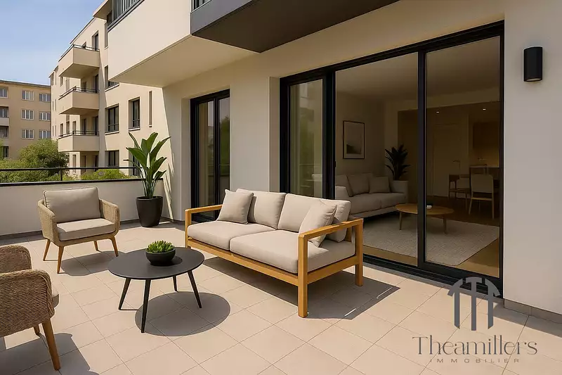 Ce beau T2 se compose d'un grand séjour lumineux donnant sur une belle terrasse profonde + 1 chambre + 1 salle de bain et WC