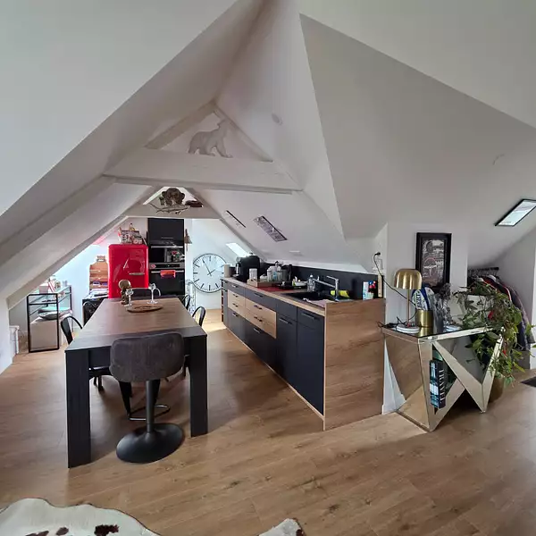 Situé au dernier étage d'une petite copropriété, calme et bien entretenue, cet appartement de style loft vous séduira par son caractère atypique et ses beaux volumes. Il se compose d'un salon séjour lumineux avec une cuisine aménagée et équipée, idéale pour recevoir. L'espace nuit offre une suite parentale confortable avec salle d'eau attenante. Atouts supplémentaires : une cave privative et un petit terrain d'environ 30 m² rare en appartement, et parfait pour profiter des beaux jours!!! (5.00 % honoraires TTC à la charge de l'acquéreur.) Copropriété de 5 lots - dont 5 lots habitation. (Pas de procédure en cours). Charges annuelles : 500 euros.