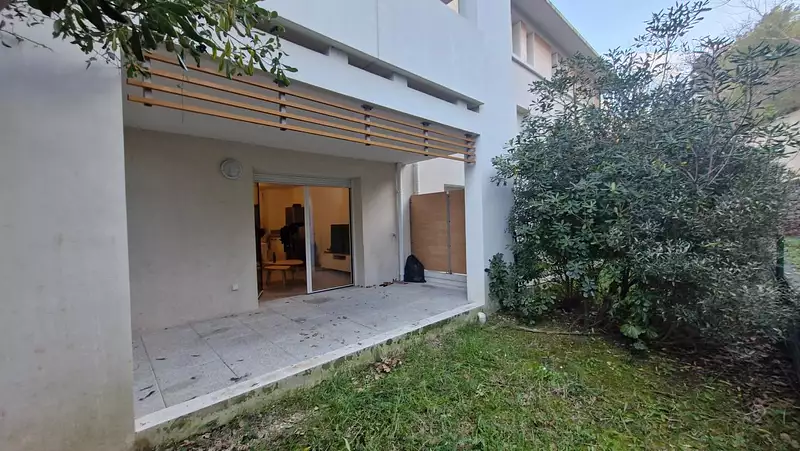 Appartement en bel état disposant d'un espace séjour avec cuisine ouverte, une chambre, salle de bains et wc. Vous disposez d'une terrasse couverte et d'un jardin privatif sans vis-à-vis.