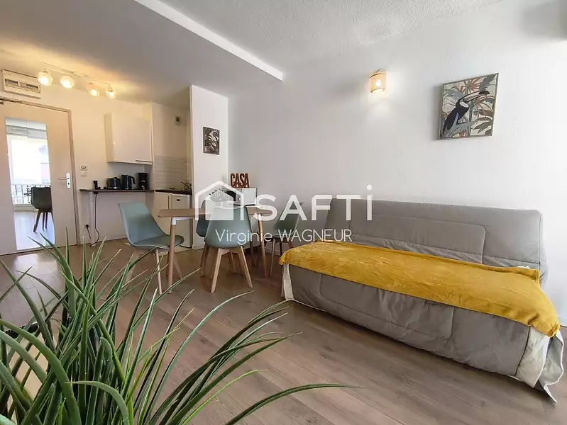 Bel appartement lumineux, meublé et climatisé en excellent état offrant une ambiance chaleureuse et une vue dégagée. Il se compose d'un spacieux séjour avec son espace cuisine, une chambre spacieuse avec placards.