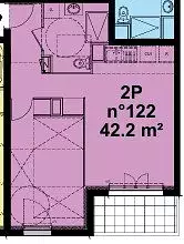 | 42,2 m² - 2 pièces - 1 chambre | Étage 2/3 avec ascenseur |